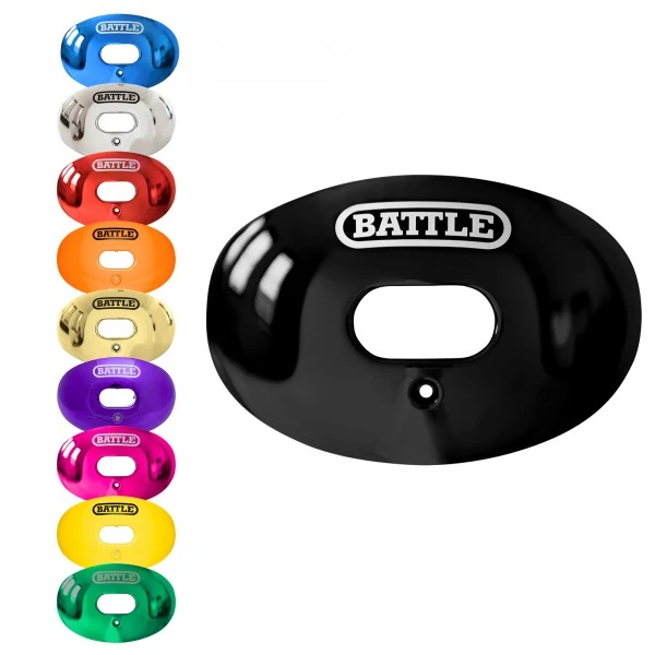 Der BATTLE Chrome Oxygen Football Mouthguard ist ein Mundstück, der mit Hilfe von Sportmedizinern und Zähnärzten entwickelt wurde. Dank der sehr großen Atemöffnung bekommst du sehr gut Luft und kannst eine bessere Leisung abrufen. Es gelangt mehr Sauerstoff in den Körper, somit können sich Deine Muskeln schneller erholen, Du bist fitter und Deine Reaktionszeiten verbessern sich. Die Helmbefestigung (Strap) kann auch abgenommen werden.